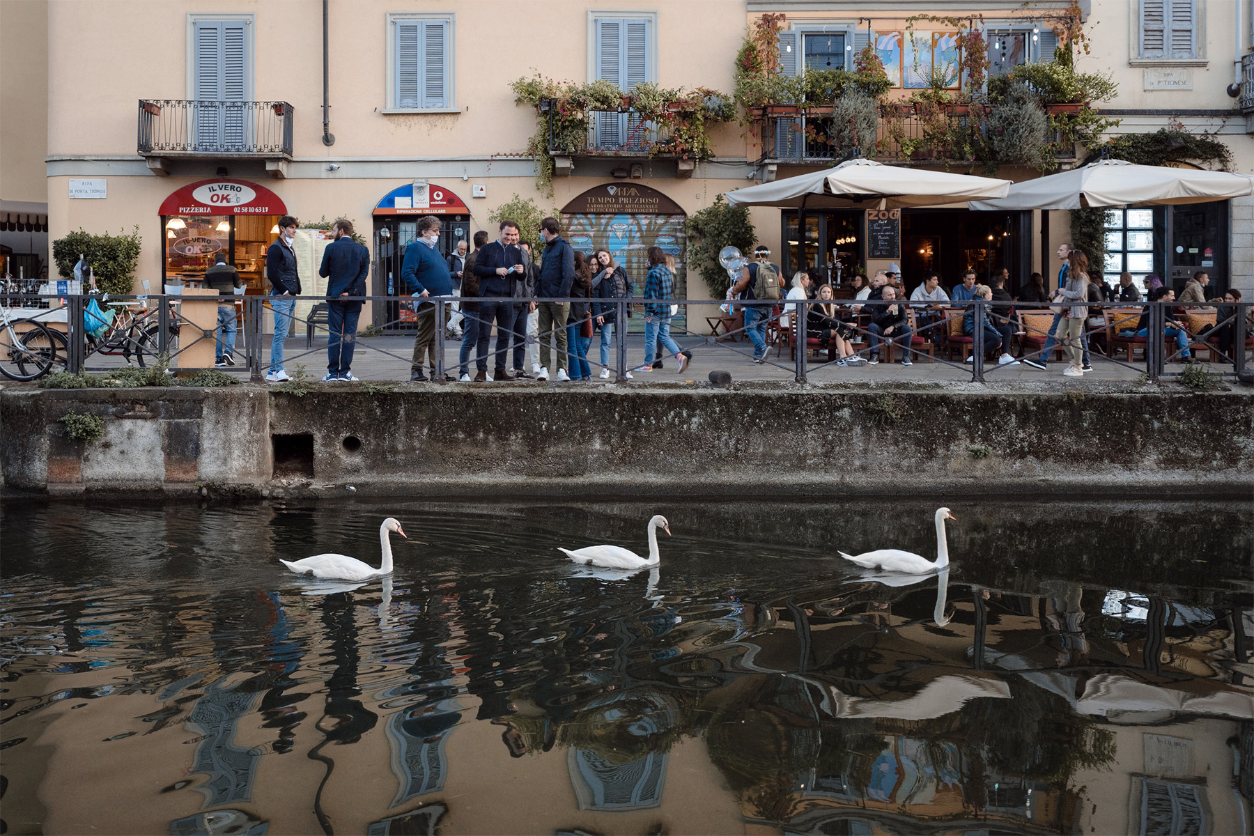 I cigni in riga e ben distanziati sembrano voler dare l'esempio...mah....