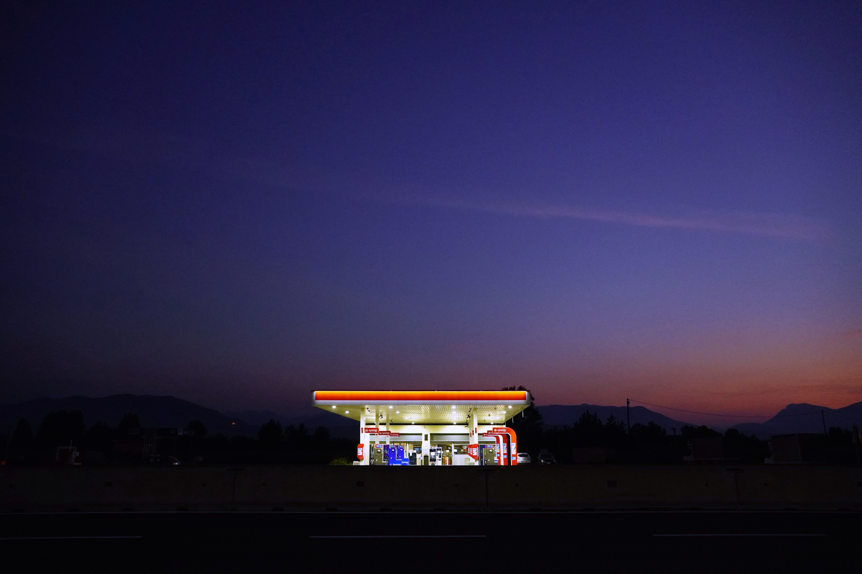 La fotografia è fatta all'alba, da un punto poco illuminato della tangenziale di Brescia, da una pompa di benzina opposta a quella ritratta dove ero a fare rifornimento.