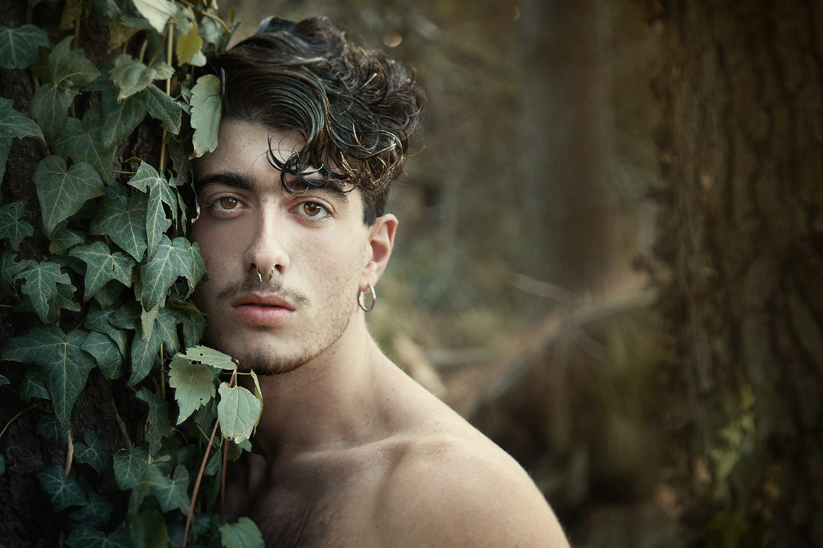Un incarnato quasi candido, che risalta ancora di più immerso nella natura. Foglie e tronchi a fare da cornice a questo volto dall'espressione enigmatica,, quasi impaurita. Disturba solo un pochino il ramo che arriva sulla schiena .  _________________