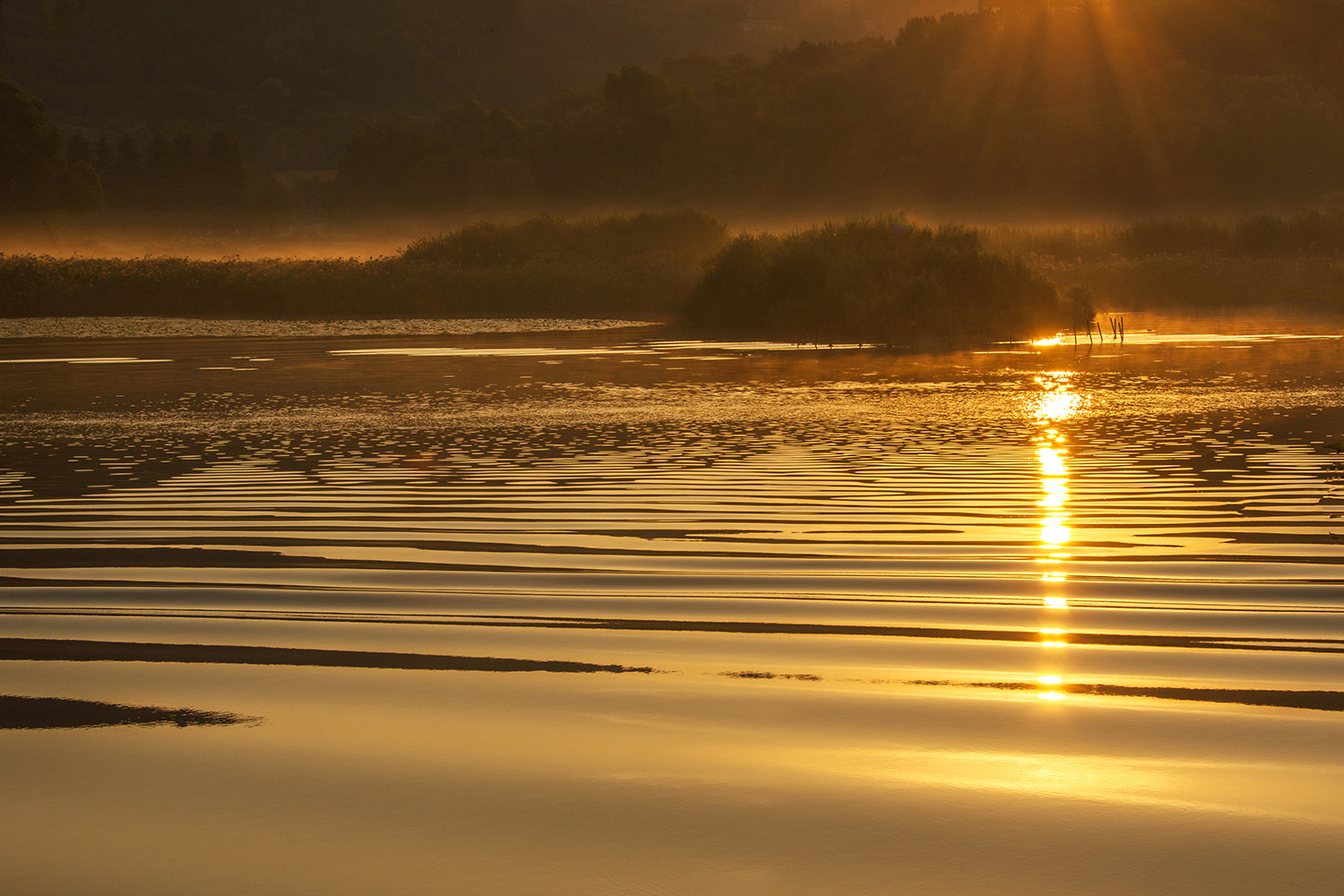 C'era meno fumo nebbioso quella mattina e il fiume ha dato un colore dorato diverso dal tuo solito, più deciso e squillante. La diversità ti ha probabilmente consigliato di mettere un adeguato titolo alla foto stavolta. Il sole c'è, forte, ma lo hai lasciato fuori. Le ondulazioni sono gustosissime. Bellissima! Ciao, Francesco _________________ Fotocamere Olympus OMD e PEN, Panasonic G3. Software GIMP