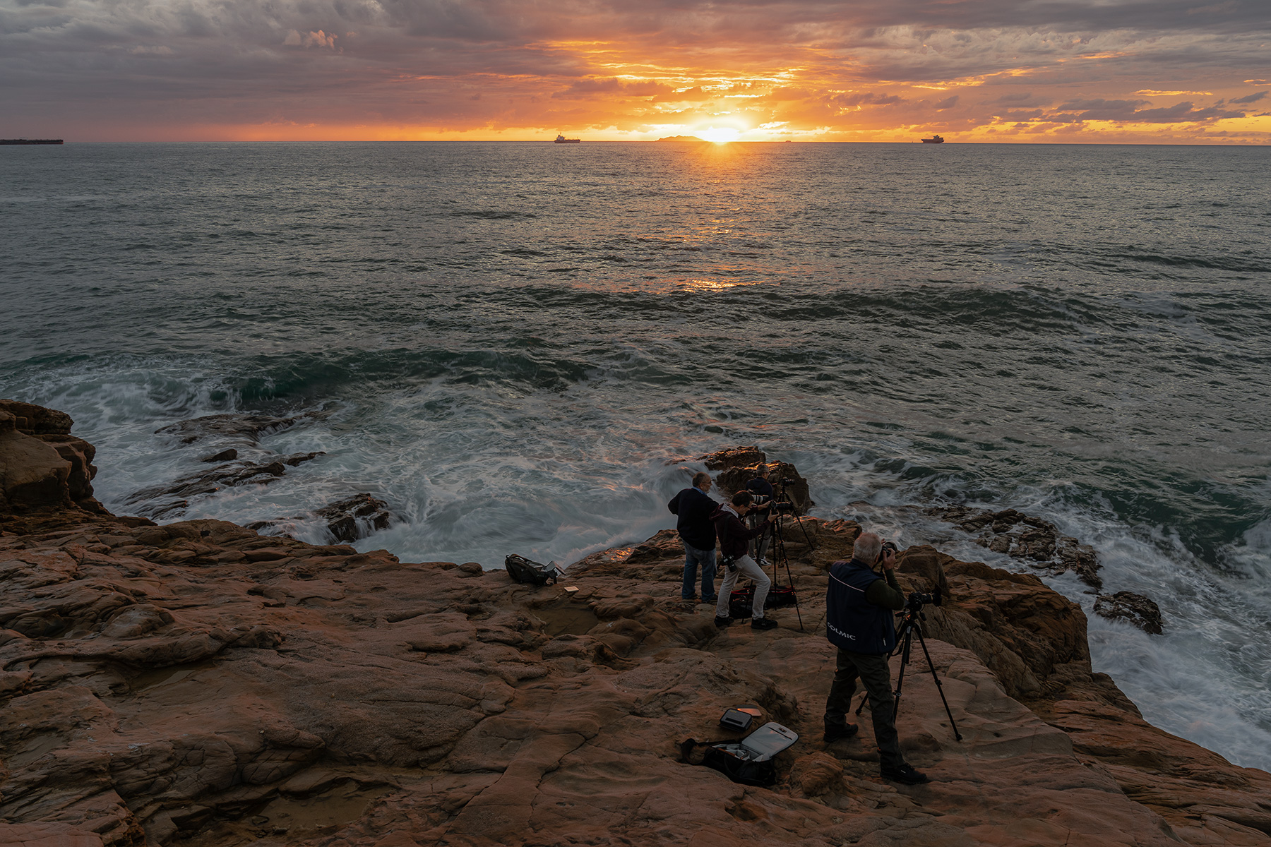Piacevole composizione sia per la bella ripresa ed i colori del tramonto..chissà se quei fotografi si sono accorti... ben vista.