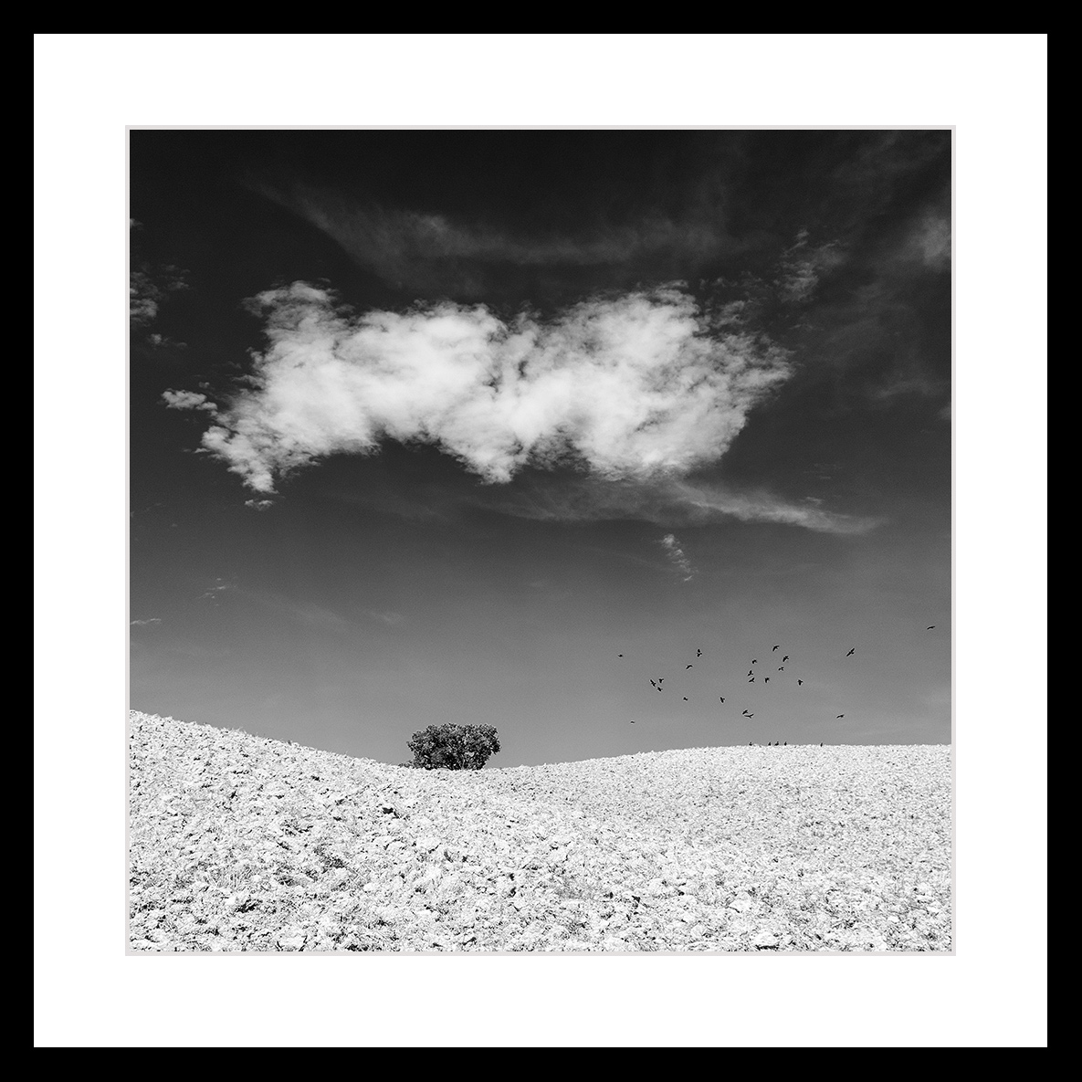 Bellissima! Mi piace tutto, la composizione, con nuvola, alberello, stormo… e le tonalità, con il terreno così chiaro e il cielo così intenso… Un’immagine veramente affascinante, complimenti!
