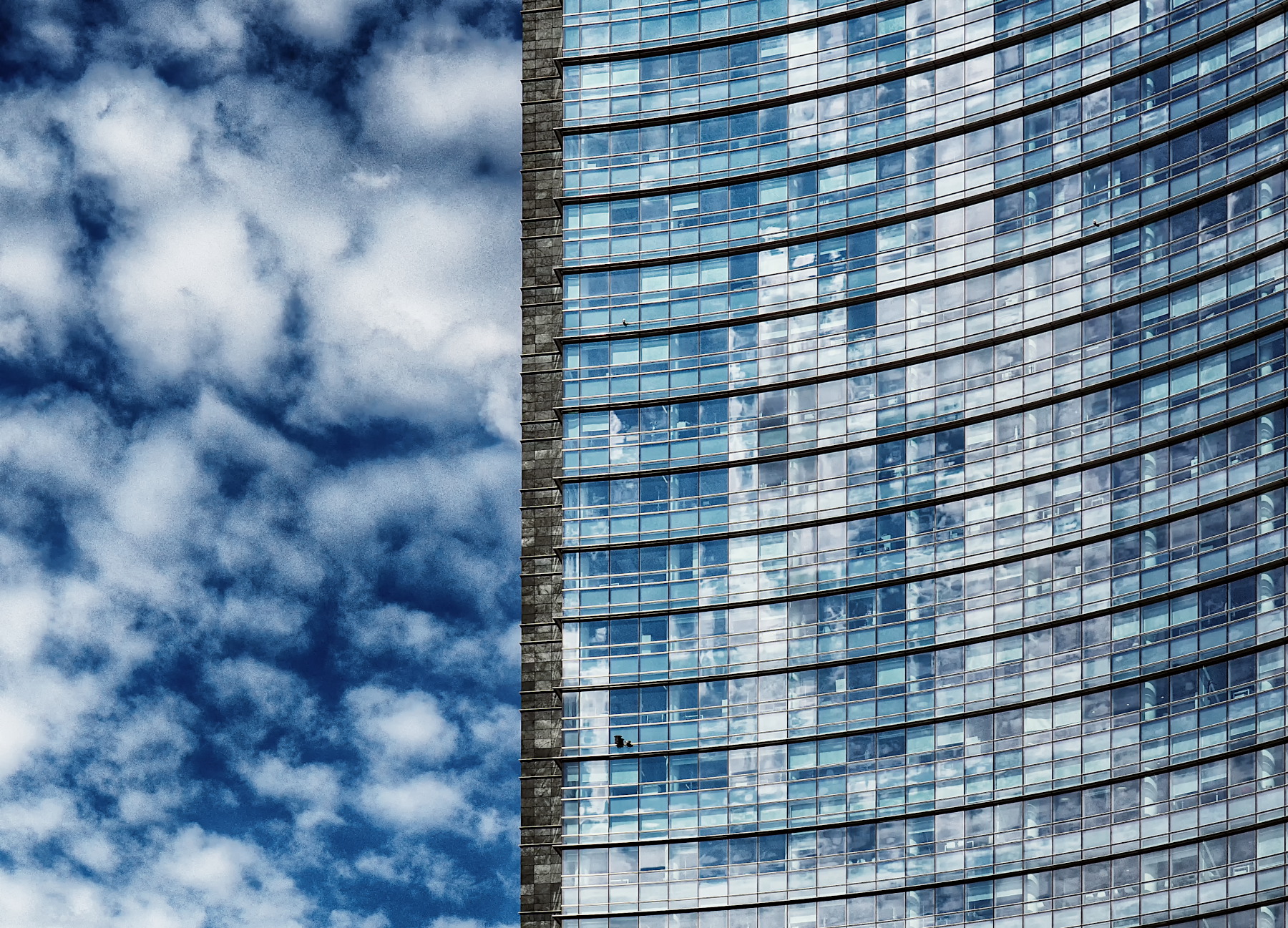 Composizione spaziale! molto bello il contrapporsi della ordinata pulizia dell'architetura ed il rumore del cielo, bravo! mi piace molto ache come hai gestito i colori e la luce