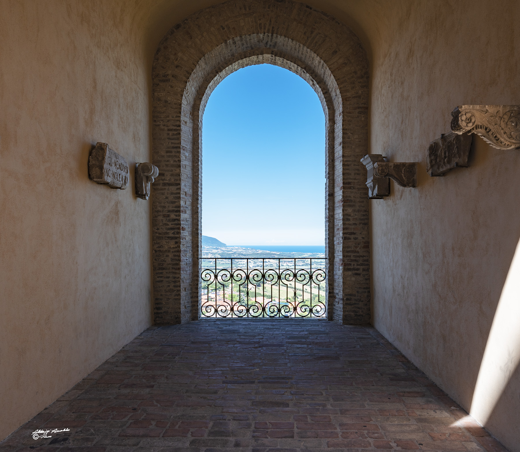 Una bella fotografia. Costruzione ottimale ed indubbio punto focale che è la vista dalla finestra. Bella la differenza cromatica ed anche di luminosità corridoio/panorama sulla quale si regge lo scatto. Buono il cielo che essendo terso e di un azzurro saturo il giusto e luminoso, si comporta da contraltare alle pareti meno vive e un poco spente del corridoio. Vi è però un dettaglio che non mi convince, mi riferisco alla scia luminosa a destra in primo piano. Essa è elemento vivo e luminoso, quasi maggiore della vista dalla finestra. Le ruba parte dell’attenzione e centralità essendo, come lei, elemento che si staglia e contrappone al corridoio spento. Ho provato, per curiosità, a coprire con un foglio questa zona e devo constatare che il guadagno è per me notevole. tolto questo dettaglio direi che lo scatto merita.