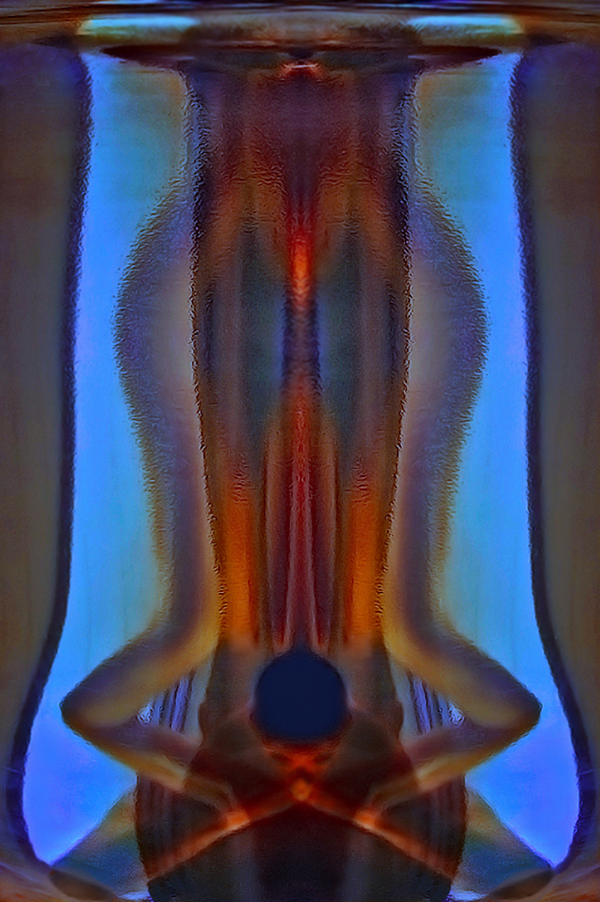 E' la tendenza dell' essere umano, quella di elevarsi verso “ l' alto” e di involversi verso “il basso” , in questa ascesa – discesa, tra aspetto spirituale e materico,non c'è vincitore ma evoluzione ed involuzione dell'uomo. Il daimon ha questa funzione, di non rendere inerte e monotona la vita umana. Per l' elaborazione ho utilizzato la pentola, duplicata, riflessa orizzontalmente e sovrapposta all' originale, utilizzando i livelli photoshop |