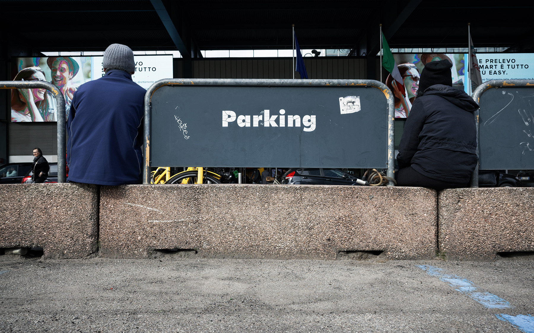Ottima ripresa dei due personaggi seduti sembra che guardino lo stesso cartello pubblicitario.. Bravo come sempre ha catturare certe immagini.