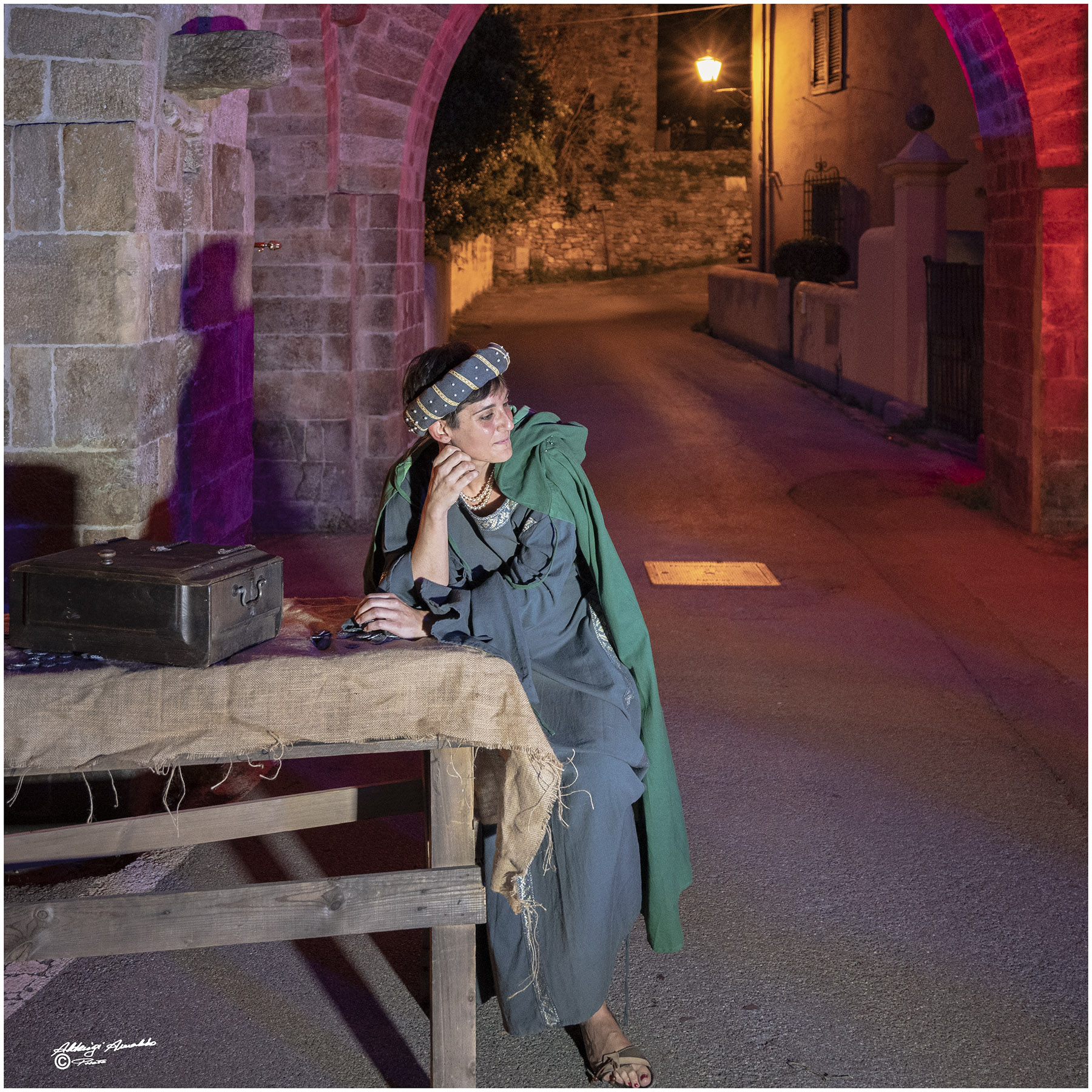 Luci artificiali non semplici da gestire, ci sono cromie varie tra il giallo, arancione, viola, quest'ultimo poi colora in modo singolare l'ombra sul muro dietro il ragazzo in costume.