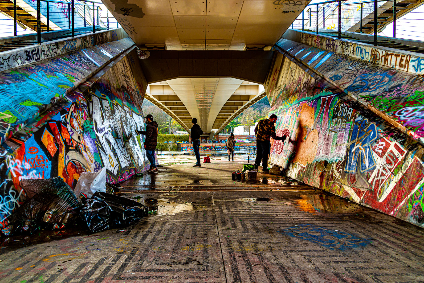 Io credo che una foto di questo tipo viva di colore! Però forse è il caso di riportarlo a gradi di saturazione più consoni... almeno in quelle aree del frame che non sono coperte di pittura spray! Questa è la mia personale visione della tua bella proposta. Un saluto