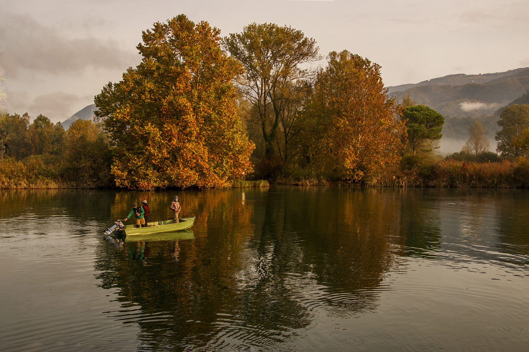 Non male elis, ottimo il punto di ripresa con questi due alberi alti e centrali a fare da guardia ai pescatori, intenti, e in qualsiasi stagione.
