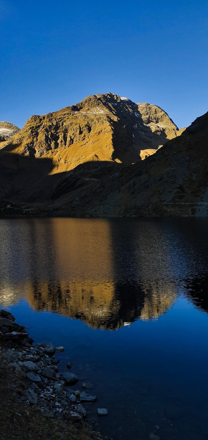 Un titolo importante per uno scorcio che senza dubbio affascina e appaga ma che mi lascia un pochino insoddisfatta... Questa ripresa stretta mi lascia il desiderio di vedere di più, di avere più aria e libertà. Belli i colori,tra realtà e riflesso,con questo azzurro e oro che si completano,frutto anche di una luce che accarezza piacevolmente la roccia .Da correggere la dominante ciano nelle ombre.  _________________