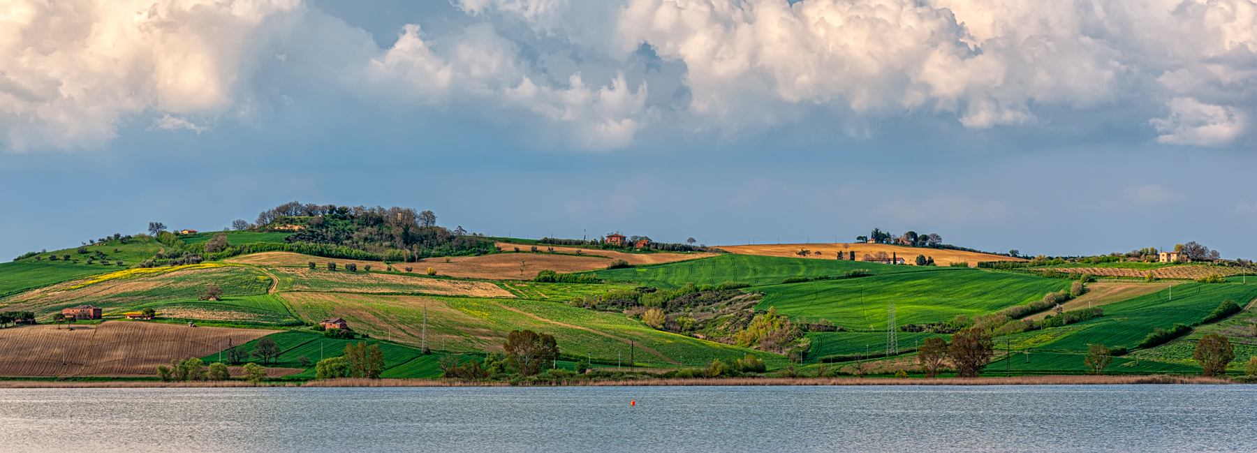Forse un po carichi i colori e non impeccabile la resa, ma lo scorcio che ci proponi mi piace molto.. ricco il cielo ,bellissima la terra con le sue trame e le sue alternanze cromatiche. Mi piace l'inserimento dell'acqua come piede lineare e pulito.  _________________