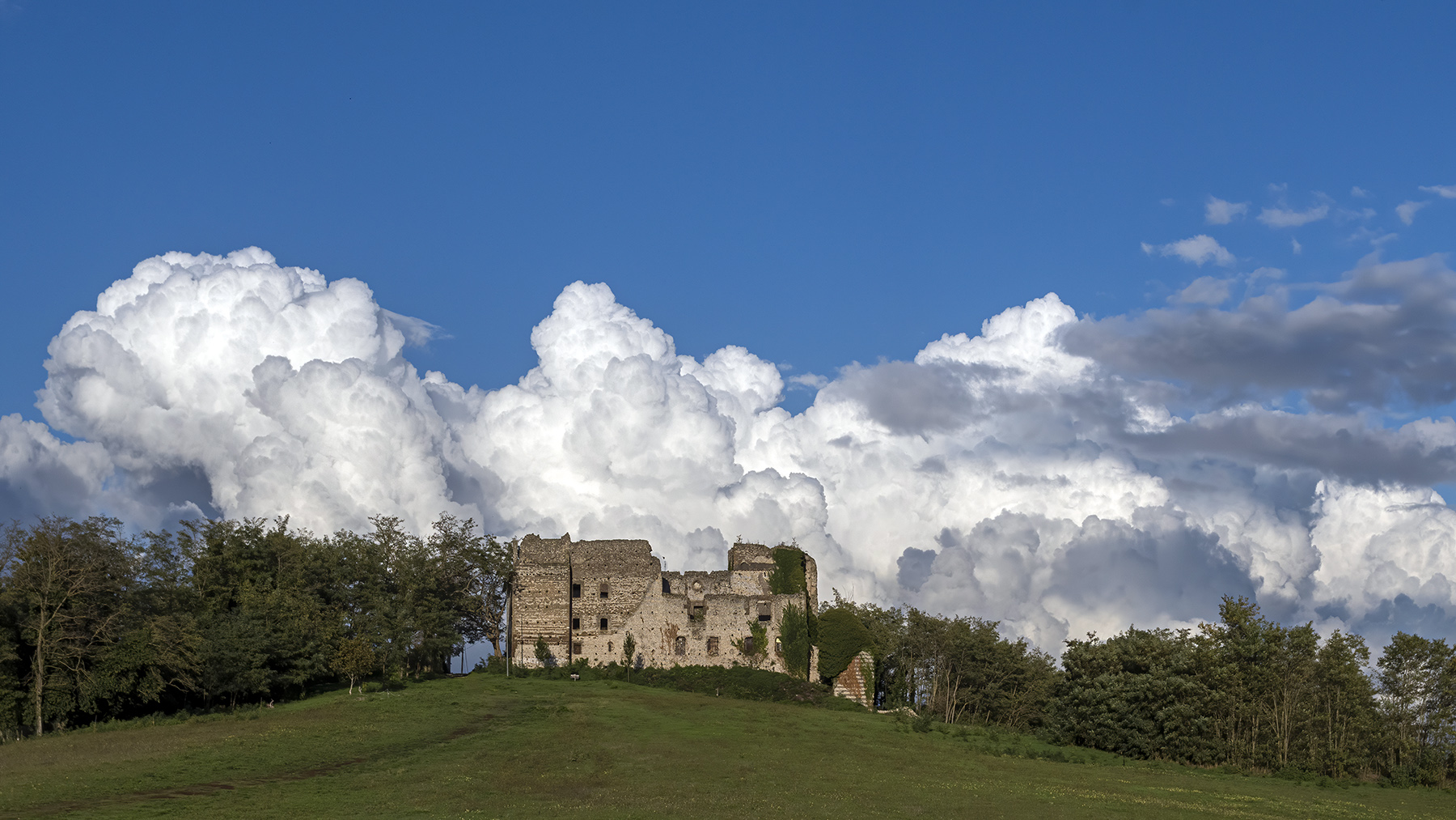 Molto belle questa esplosione di Nuvole bianche che contrastano con un bel Blu. Anche la casa diroccata ne acquisisce del fascino.. Ciao