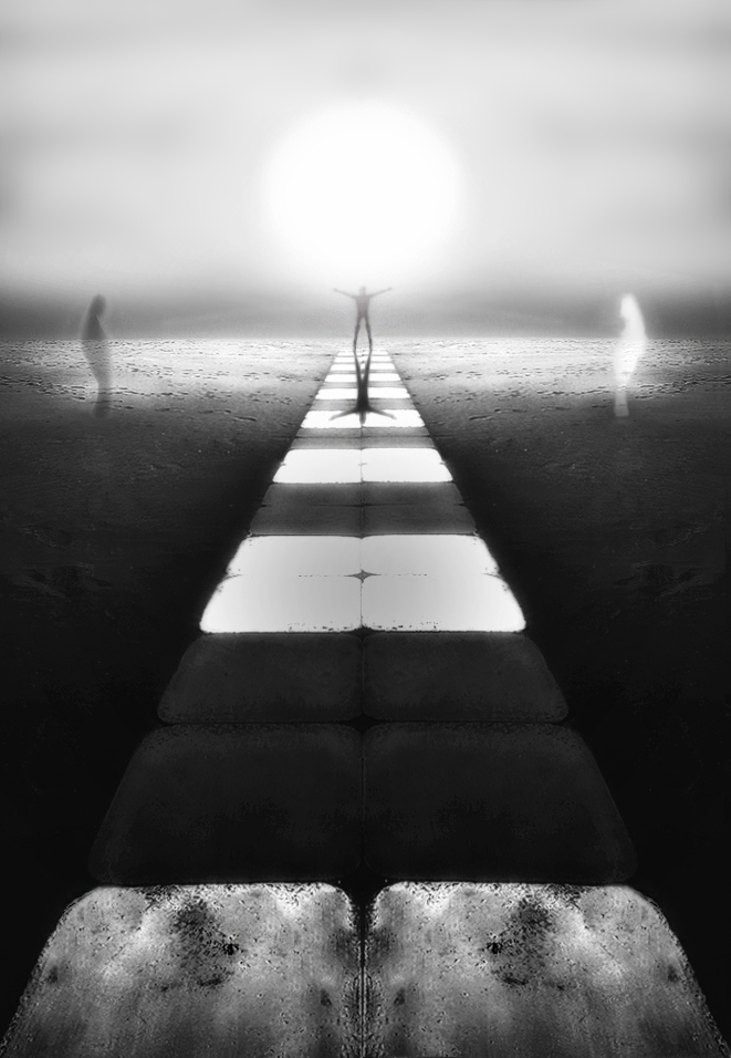 Avevi già proposto un percorso similare, dando però più importanza al percorso stesso nell’incertezza dell’arrivo… Questa immagine sembra invece più risolta, direi quasi più ottimista, perché nel percorso si incontrano ostacoli e, appunto, dualismi, contrasti e anche scontri, ma c’è la positività dello sviluppo di sé, del trovare un equilibrio e una forza nuova… Una buona ricerca, una ricerca oltre… complimenti.
