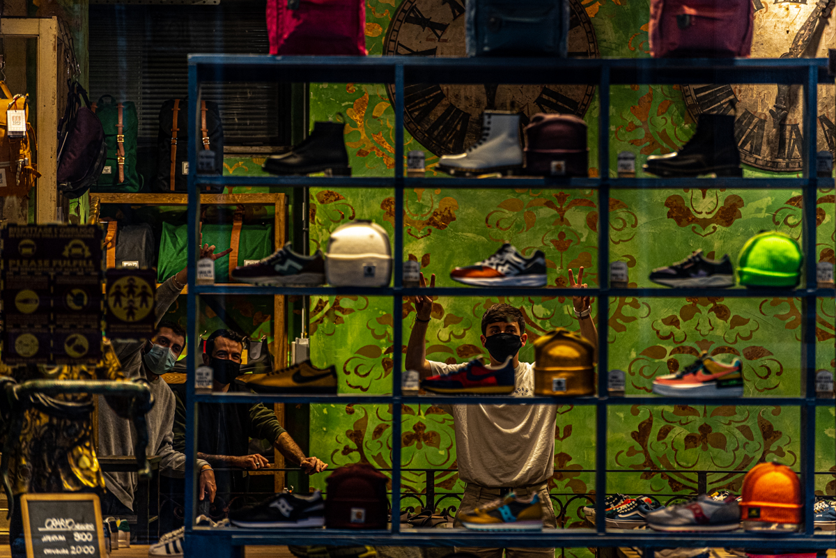 condivito il suggerimento di Antonio, taglio sullo scaffale rende molto di + ed il ragazzo mascherato risulta perfettamente cntrato. Simpatica la figura a 3 mani a sx che compensa una vetrina che espone una singola scarpa per tipo Very Happy