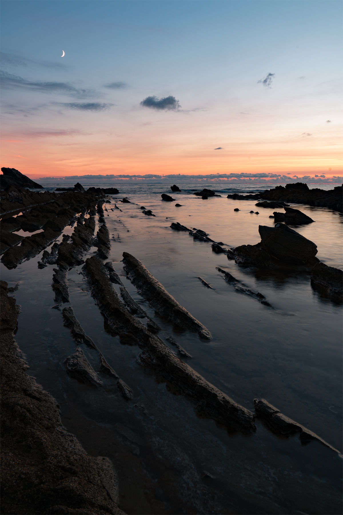 Grande composizione. Pur nelle zone avvolte dall'ombra si riescono ad indovinare tutti i dettagli. Bellissima la fuga verso il mare aperto e il cielo variopinto e solcato da uno spicchio di Luna splendente. Ottimo lavoro  _________________ - Fotografo della domenica |