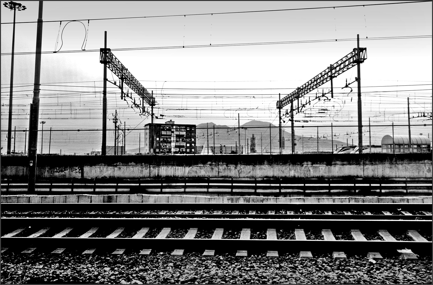 Uno scatto vero, reale, crudo, senza fronzoli… con la bella grafica data dai binari, cavi, segnali… e con il Vesuvio, la [i]Montagna[/i], che sovrasta e sorveglia. Affascinante.