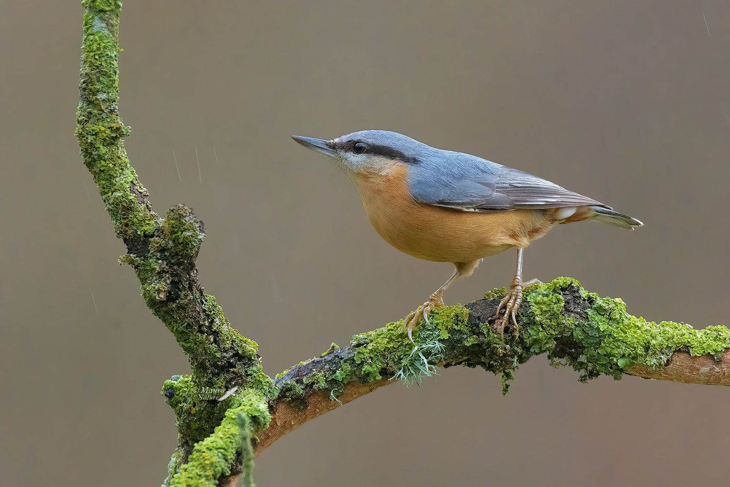 | Una scena molto rara in quanto questo esserino non ama molto stazionare sui posatoi. Ben ripresa con la pioggia che rappresenta un elemento in più. |
