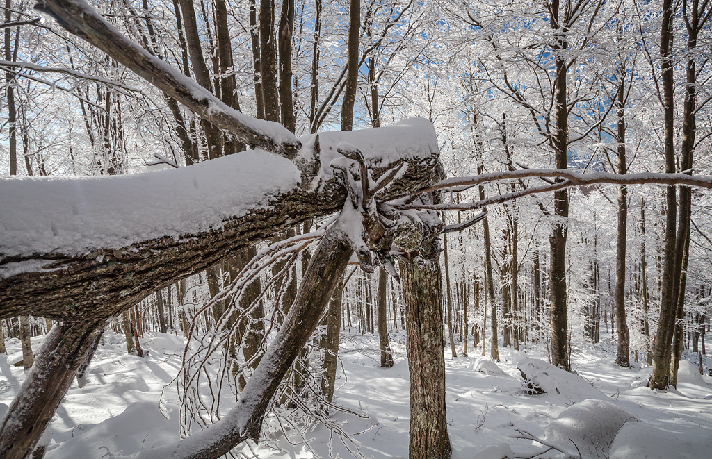 Questo è un commento del tutto soggettivo. Non riesco a vedere l'albero caduto come protagonista, lo vedo più come un intrufolato nel fotogramma. Probabilmente per via dei tagli e per via del fatto che stavi troppo vicino. Ciao