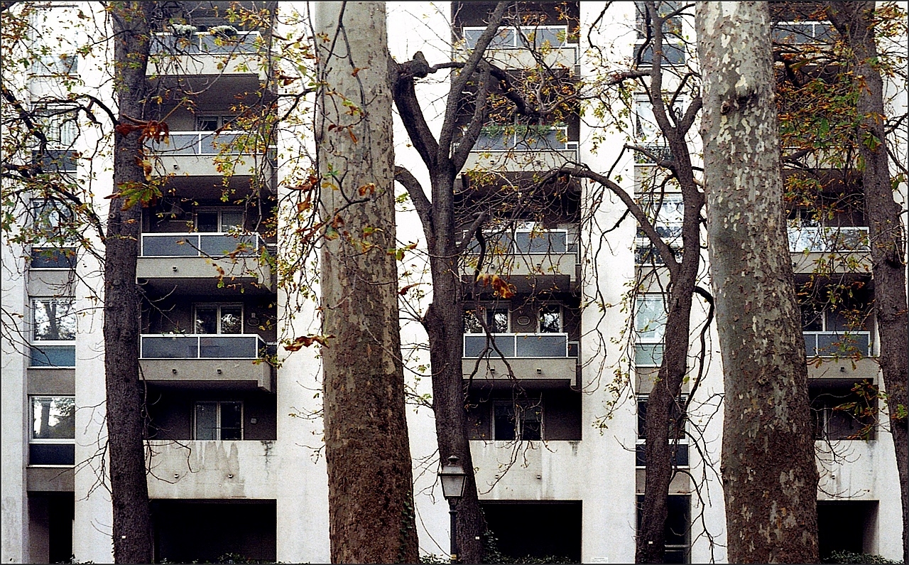 Non entro negli aspetti tecnici ma solo in quelli compositivi per dirti che questa immagine mi piace molto, trovo ci sia un ottimo accostamento cromatico e geometrico tra alberi e palazzo (con quel poco che ricordo di tecnico dico solo che con un 50mm non hai problemi di allineamento e linee cadenti, giusto?). Ottime tonalità e nitidezza, molto bravo!