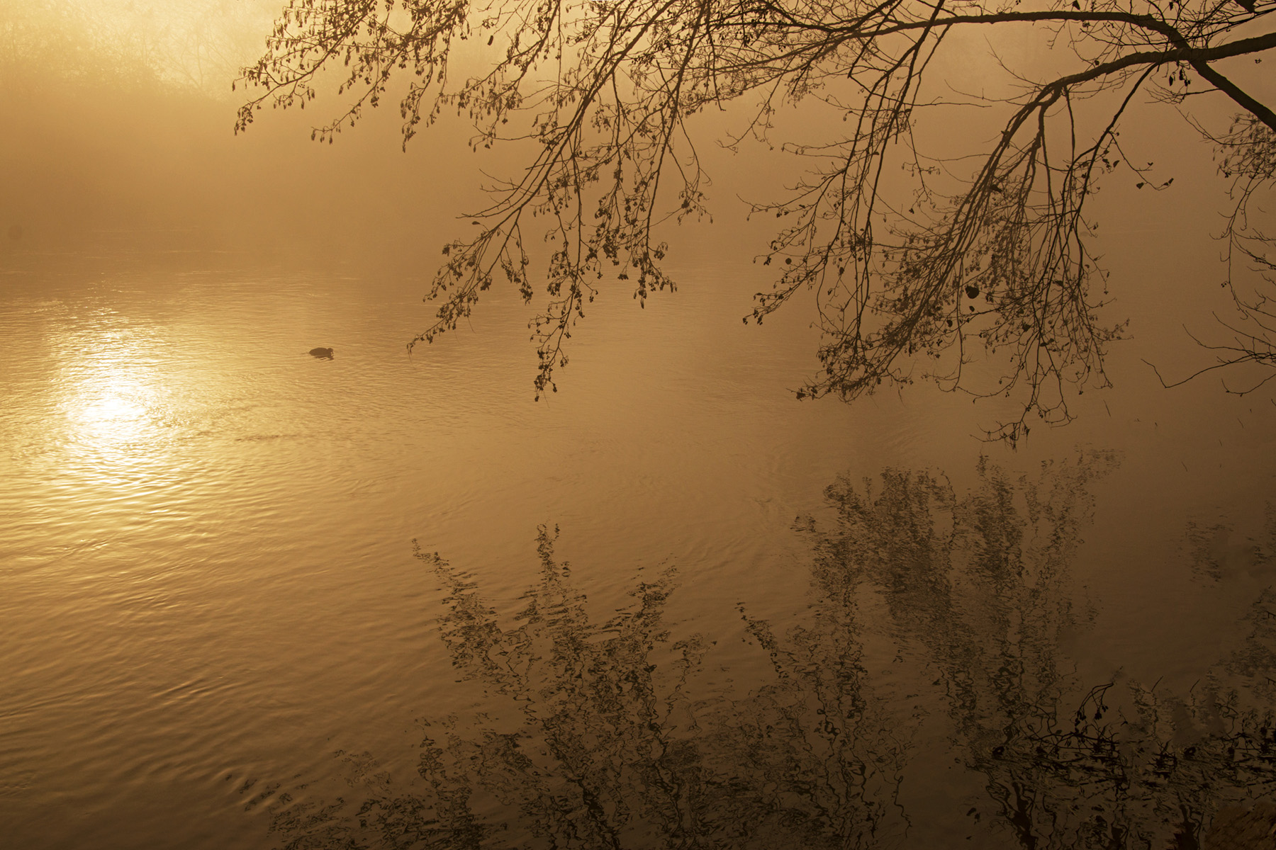 Una bellissima atmosfera aurea, impreziosita dal riflesso del sole nell'acqua... mi piace molto.