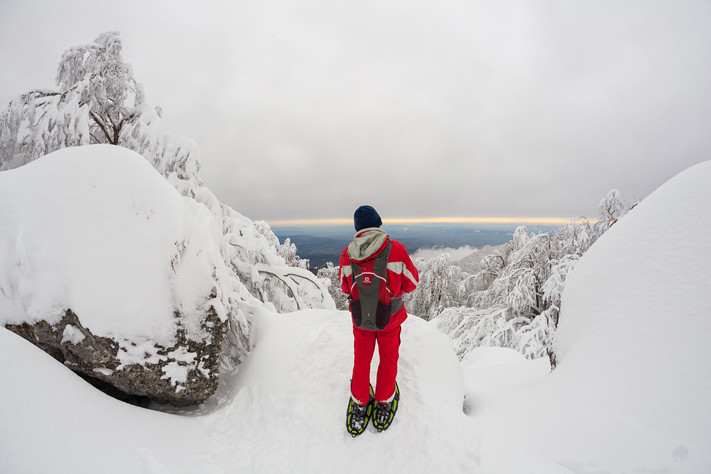 Un bel punto di rosso in mezzo a tanto candore...Dev essere un bella soddisfazione dopo tanta fatica poter ammirare un panorama così immacolato, silenzioso,meraviglioso. Vien voglia di scoprire anche il punto di vista dell'uomo in rosso..quel qualcosa in più, in lungo e largo che il suo occhio può vedere. Mi piace Ciao