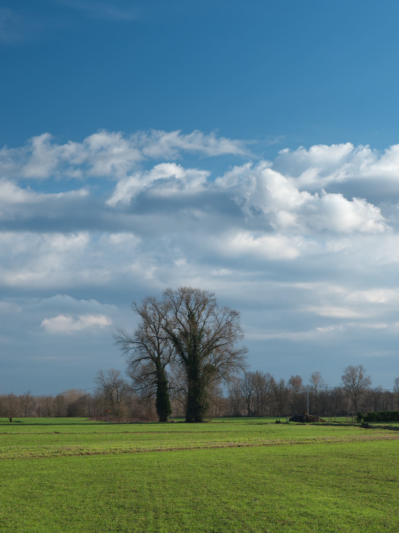 Una composizione perentoria, prato, alberi, nuvole, cielo… che non ammette repliche. Anche l’inconsueto, per un paesaggio, formato verticale sembra sottolineare questa risolutezza. Decisionista, bella per questo