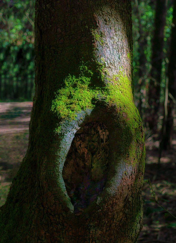 Bello questo raggio di sole che illumina una porzione di albero, e accende il verde vivace del muschio… Sembra quasi voler scoprire cosa si nasconde dentro la cavità… Incuriosente.