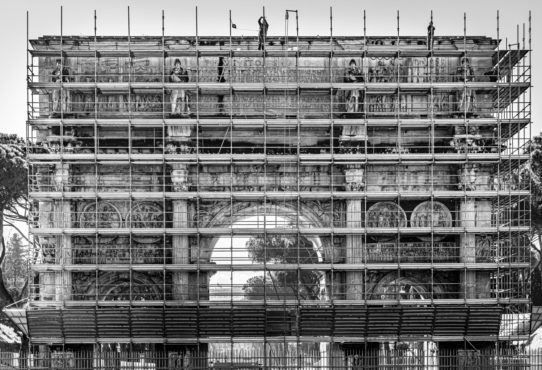 Giacomo grazie per l'osservazione, ma credo sia ovvio che ho voluto fare una foto particolare, non da turista, riprendendo le impalcature, dalla parte opposta dell'arco non c'erano ma sarebbe stata una foto banale. La confusione data dai tubi innocenti è voluta, una specie di texture regolare e moderna su un monumento di 2000 anni fa, anche il paragone tra gli operai e le statue è voluta! Capisco comunque che può non piacere! _________________ Aldo |