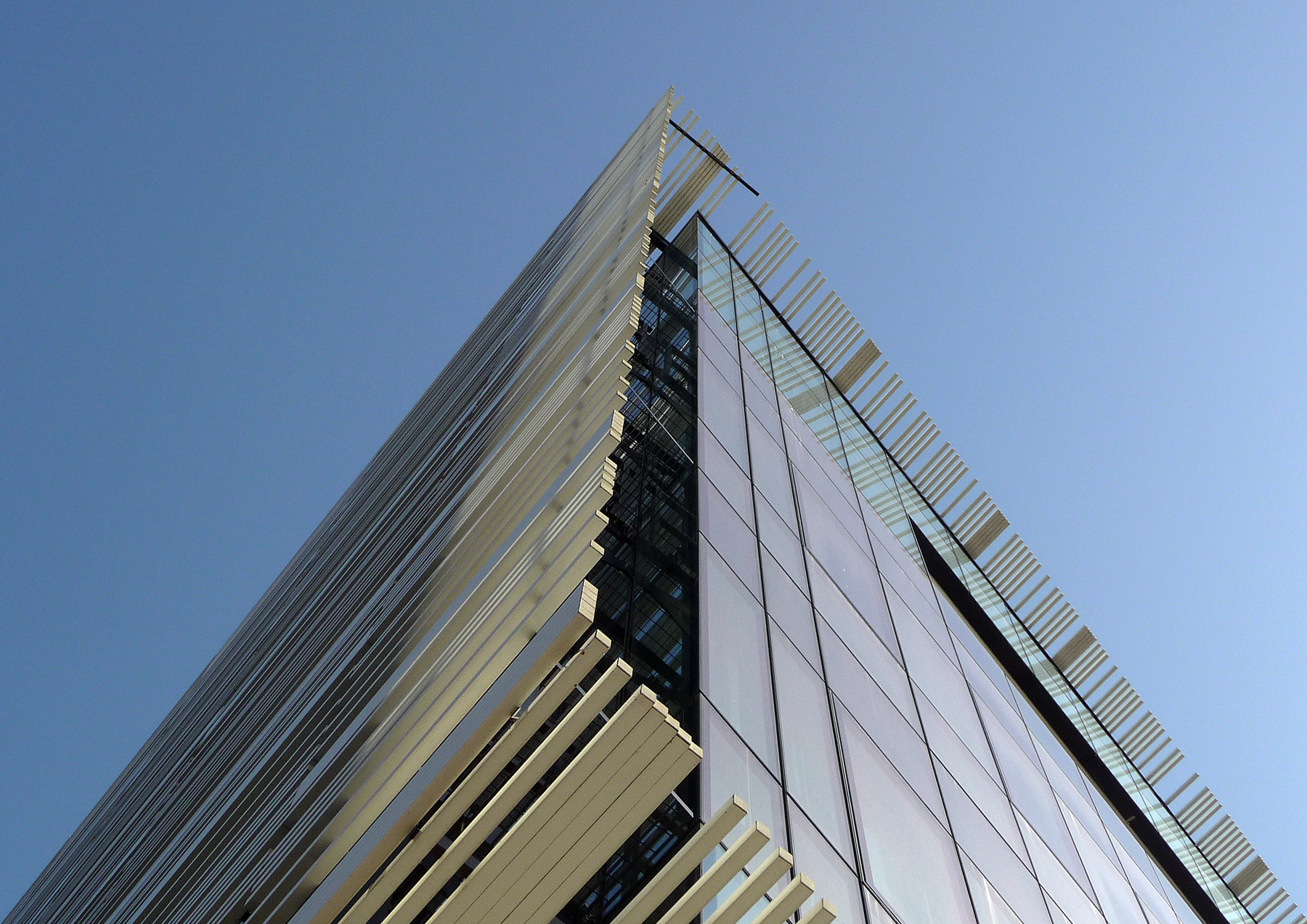 La struttura si erge come una piramide in un buon contrasto con lo spazio negativo occupato dal cielo.