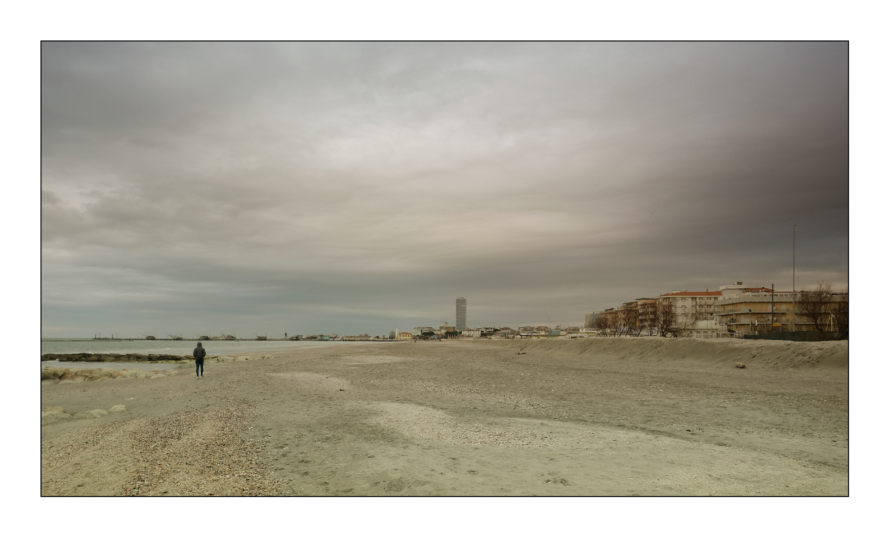 Conosco il luogo, mi piace il mare in inverno e qui ne hai colto tutto il fascino un pò malinconico, freddo, solitario . L'inserimento della presenza umana valorizza ulteriormente.