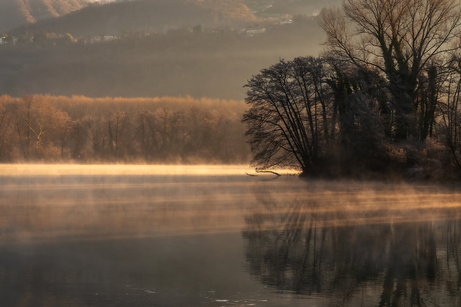| Questa luce dorata è inconfondibile....bello il riflesso degli alberi sulla destra come le lame di luce che filtrano tra i rami. molto bella. un saluto, guido |