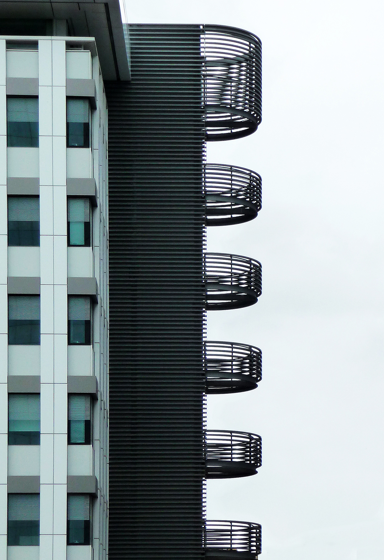 In effetti è proprio così, ho postato questa foto quasi unicamente perché mi piaceva il contrasto tra la tonalità verde chiaro dell’edificio, verde più scuro delle finestre, grigio scuro delle scale e biancastro del cielo.