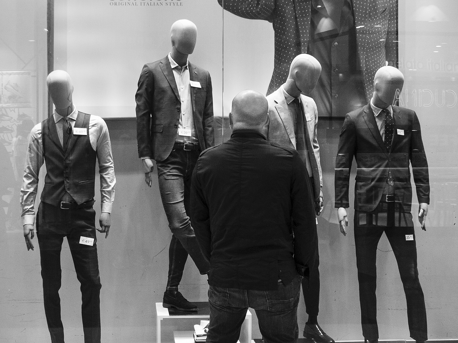 | Diversi nell abbigliamento e postura ma simili per le teste . Una simpatica e ben fotografata street |