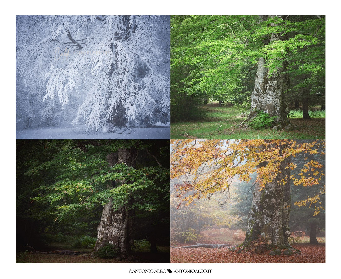 Ho fotografato per 3 anni questo faggio secolare nelle quattro stagioni, ognuna delle quali conserva un proprio fascino. L'inverno dai suoni ovattati trasforma lo scorcio in etereo e magico; i verdi primaverili nelle foglie e nei prati risvegliano il paesaggio dal letargo rendendolo vivo; l'estate perde lucentezza, ma i giochi di ombre e luci dei temporali estivi creano un alone di mistero; in autunno il paesaggio diventa poetico e romantico.
