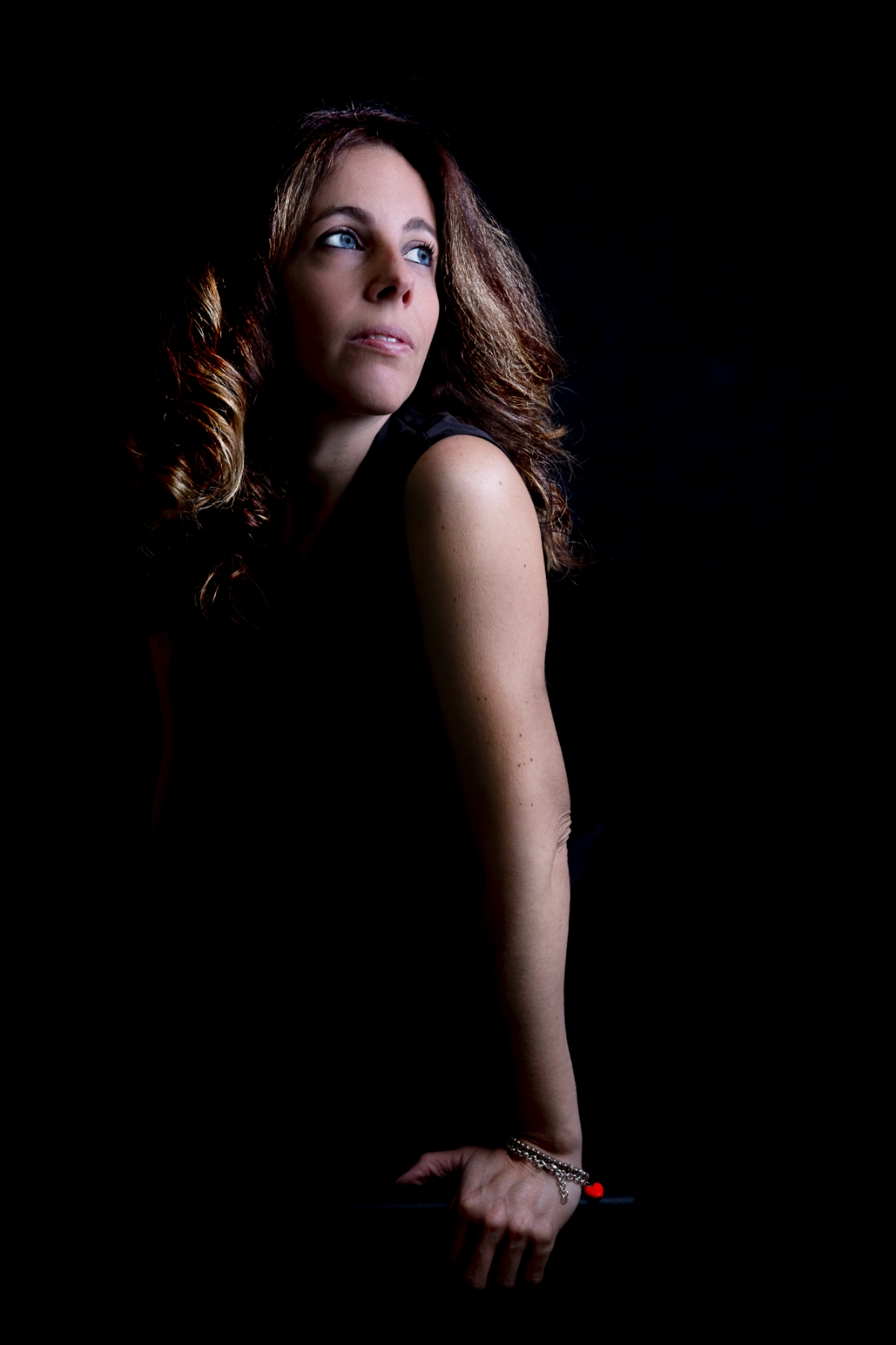 Studio, luce singola. Occhi blu e cuore rosso.