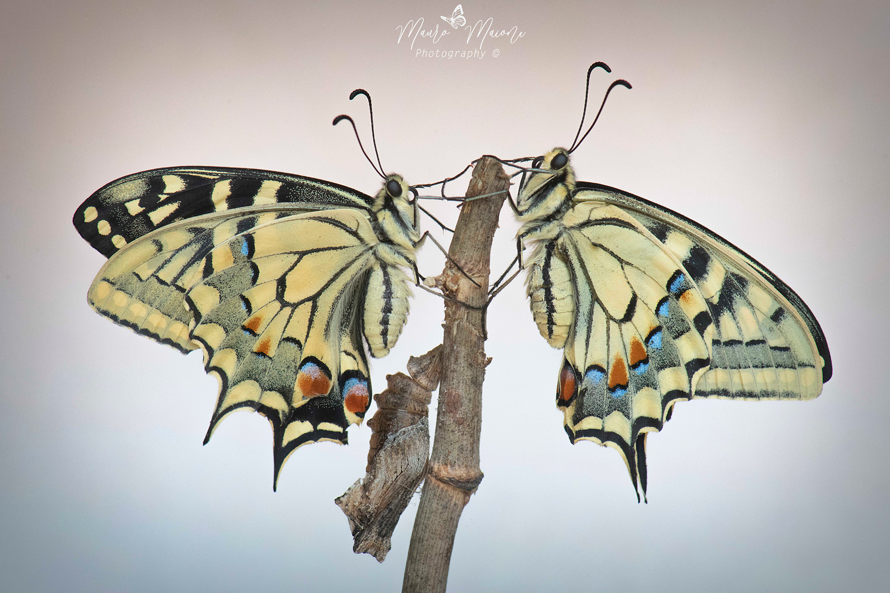 | Anche a me lo sfondo non mi entusiasma ma la coppia di farfalle merita la copertina. |