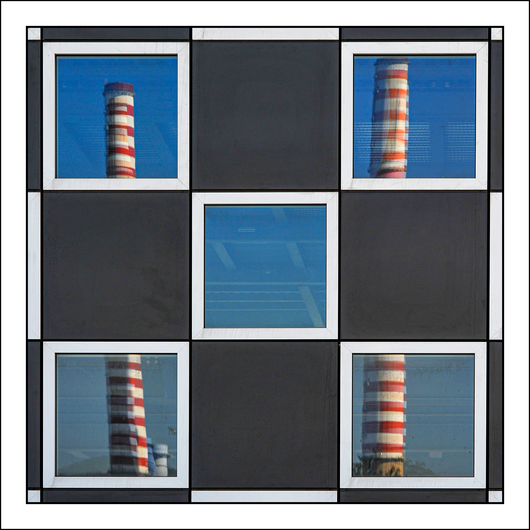 Questa foto mi è servita da spunto per una prossima raccolta/reportage sulle ciminiere qui riflesse.