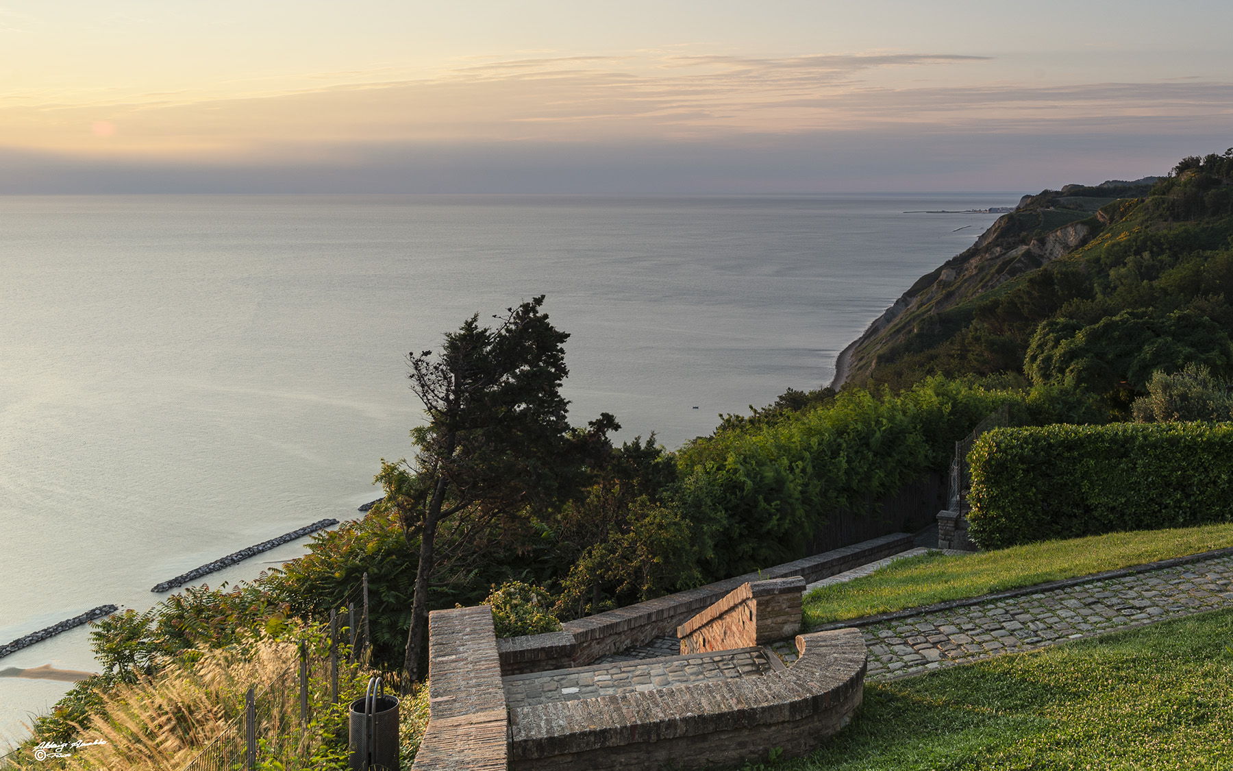Bellissimo il panorama, il parco e la discesa a mare di questa villa (?) (privata, pubblica?), che tu hai molto ben ripreso con questa luce nascente davvero dolce e suggestiva. Immagine che infonde serenità