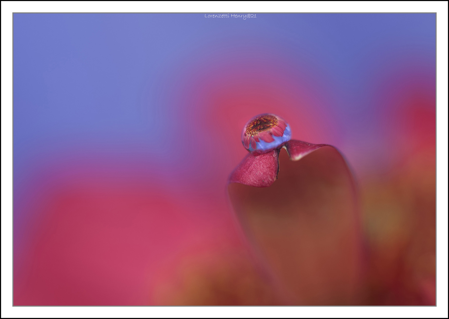| Goccia di realtà, sospesa ed in equilibrio precario, avviluppata da un ambiente evanescente. Bella e particolare immagine |