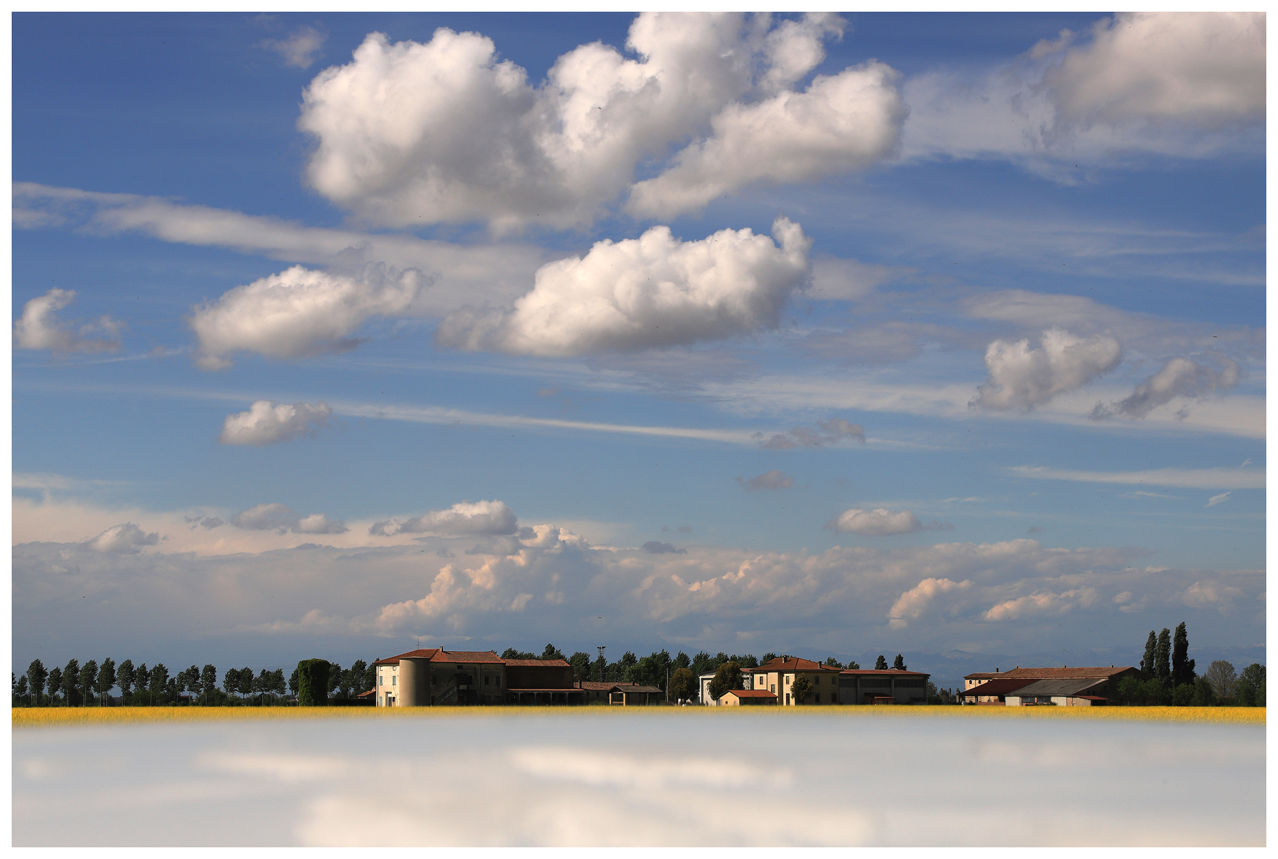 L'immancabile tettuccio stavolta si trasforma in un laghetto ai piedi di questo bel paesaggio padano pieno di luce e di colore.