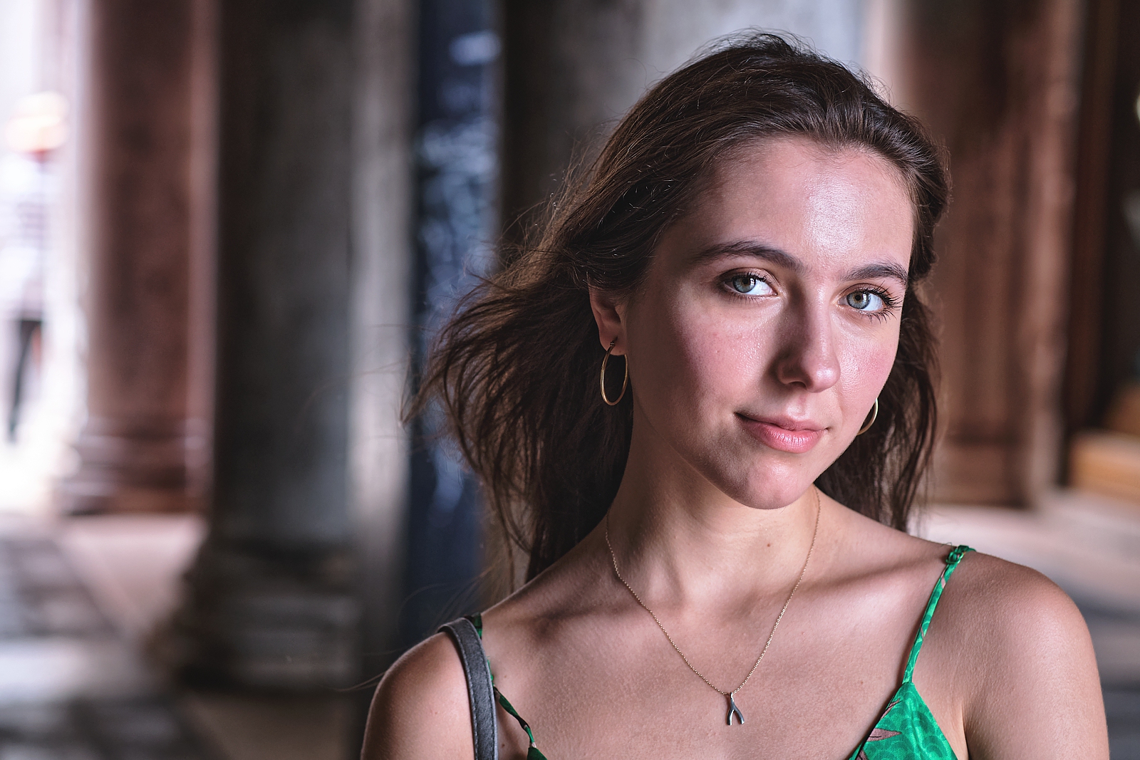 | Un ritratto di questa ragazza eseguito all'ombra delle colonne della famosa piazza. |