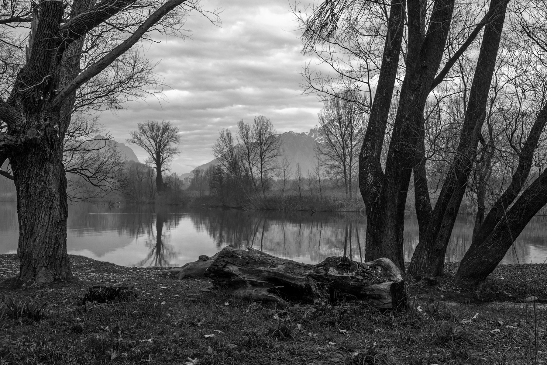 Un quadretto idilliaco. Uno scatto godibile dal primo piano allo sfondo. I tronchi degli alberi fanno da introduzione alla bellezza del lago con i riflessi degli alberi e dei monti per poi posarsi sulle montagne che sembrano toccare il cielo. Ottimo bw _________________ Giuseppe |