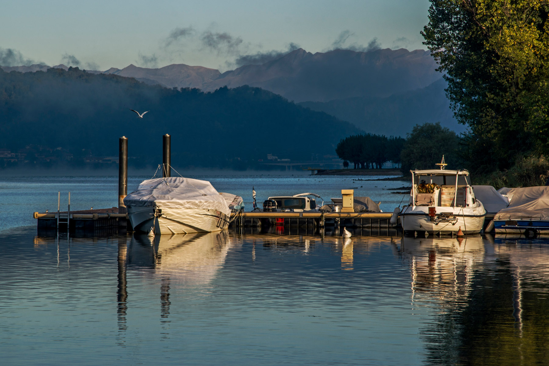 Bello il contrasto tra lo sfondo caratterizzato da tonalità fredde e soggetti illuminati dai primi raggi caldi del sole. Mi piacciono moltissimo i riflessi dell'acqua che disegnano lo scafo delle barche!  _________________ Massimo Facco