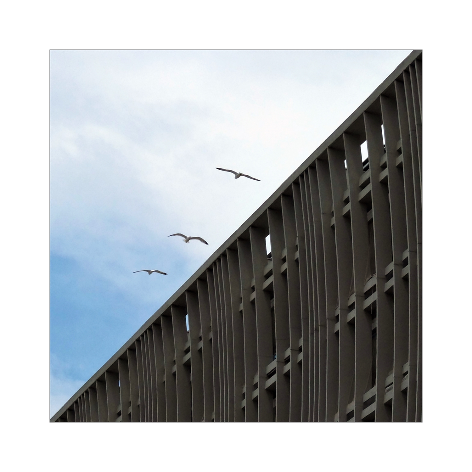 Un architettura poetica con questo volo dei 3 gabbiani che segue la linea della diagonale.