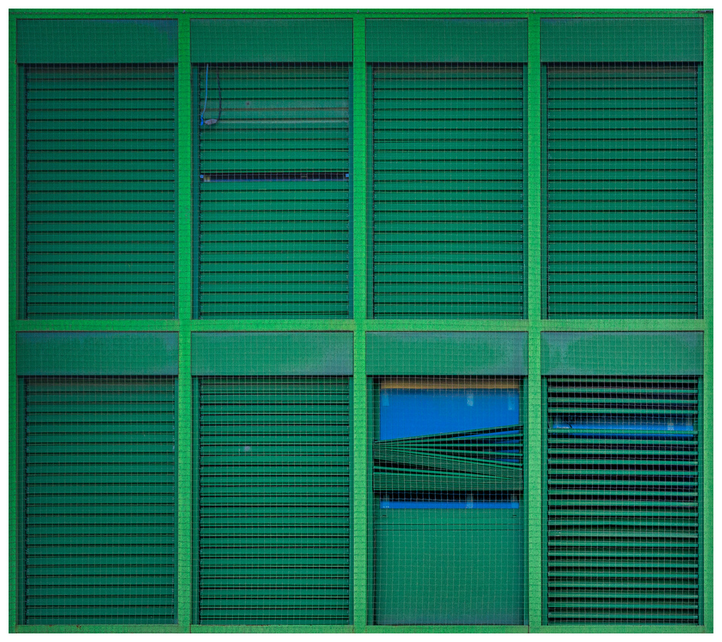 Bello il contrasto tra il rigore geometrico e la "sregolatezza" di queste veneziane, piacevole e curioso l'azzurro che spezza la monotonia cromatica della scena. La rete davanti mi urta non poco ,seppur regolarissima nella sua rappresentazione. IMHO ,come al solito.