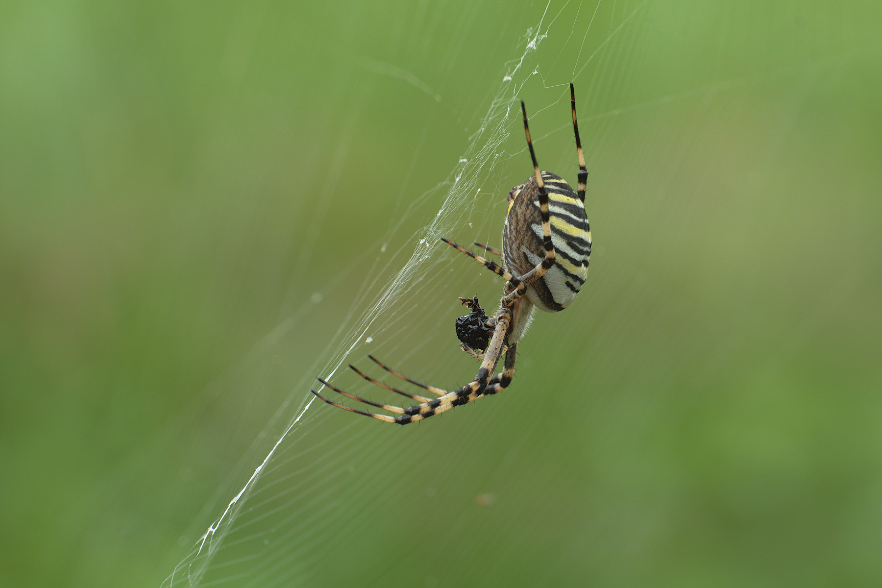 Non facile. Sono quasi sempre su tele grandi che si muovono in continuazione per il minimo soffio di vento o per i loro movimenti come in questo caso essendo in predazione/attività.