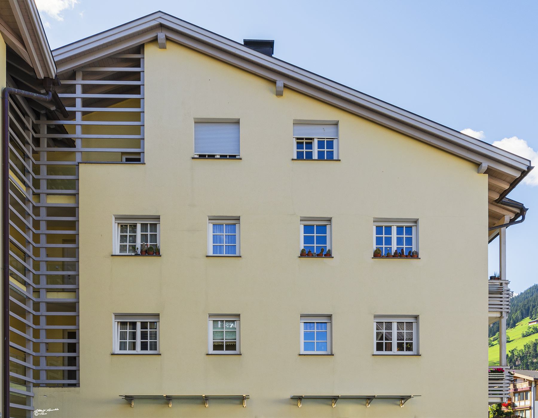 Verticali e orizzontali precise; le finestre si perdono in un'inquadratura abbastanza ampia.