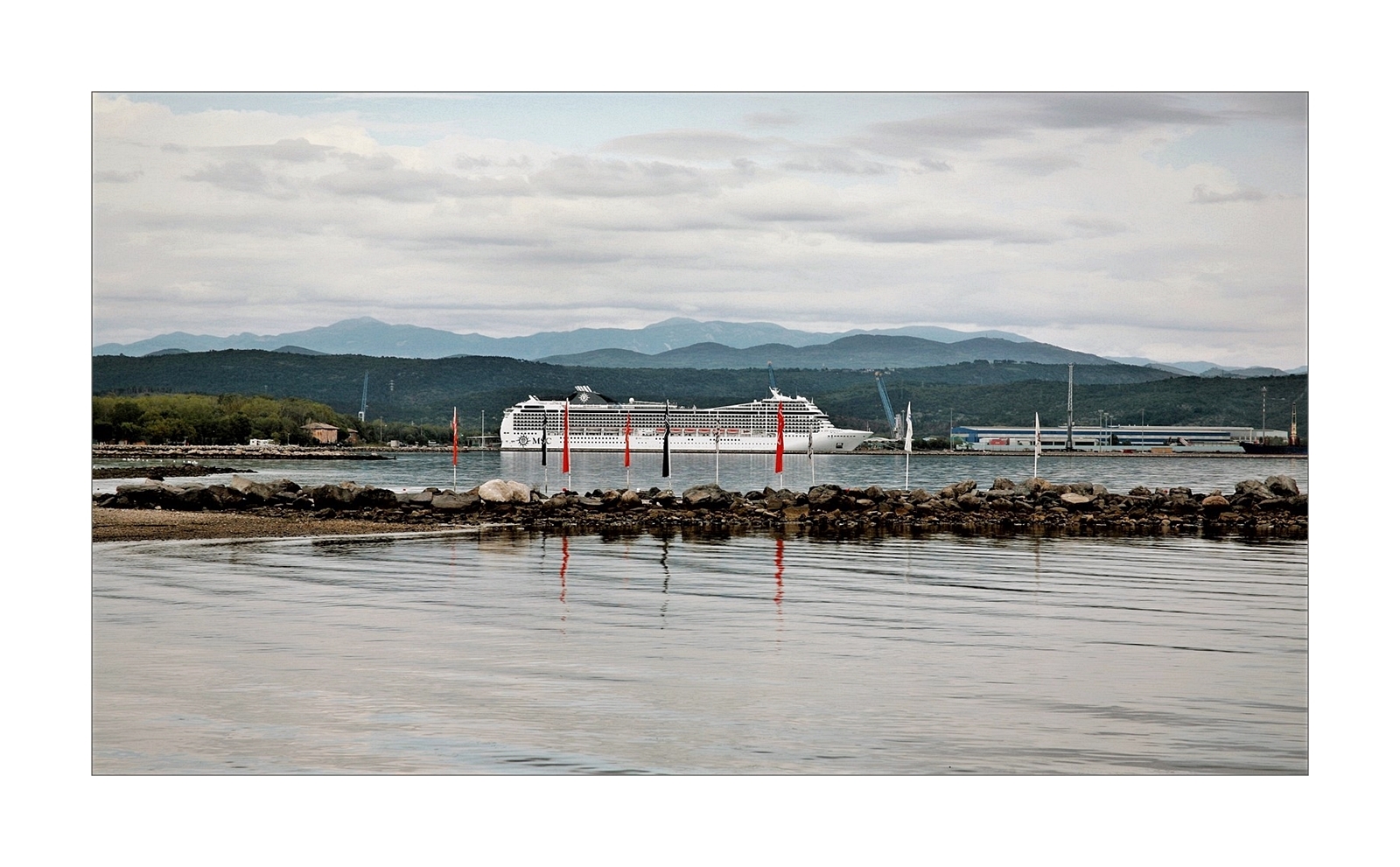 Immagine piacevole dove la nave naviga tra mare e monti.. piacevole le tonalità tenue e rilassanti, ottima composizione.