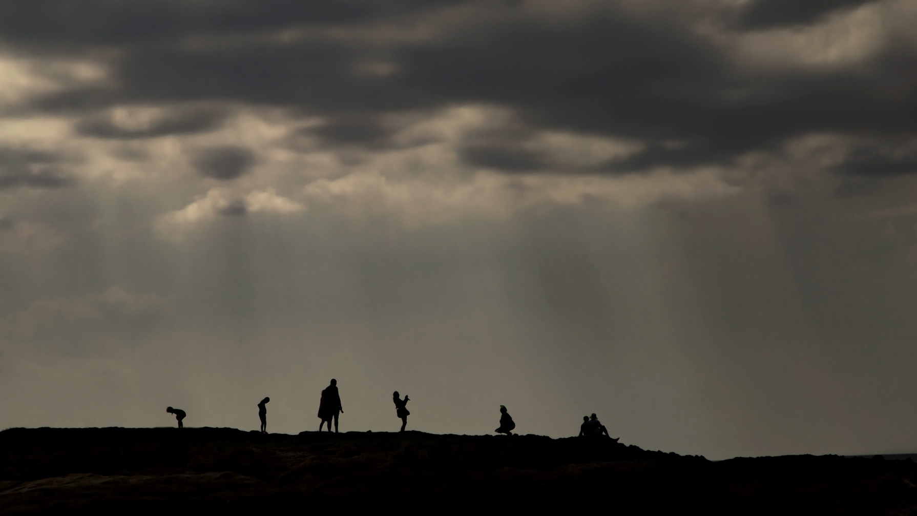 Interessante lo sky-line in controluce delle persone e delle pose assunte dalle stesse ma a me attira molto anche l'atmosfera greve sotto la quale la scena si svolge. Bello scatto. Un applauso Wink