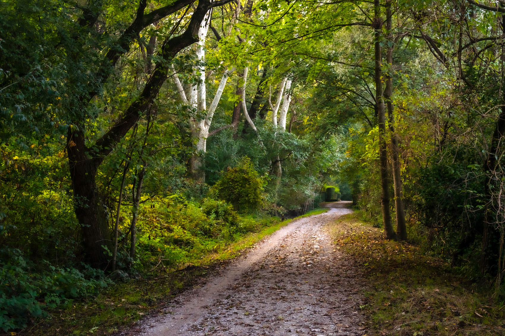 Questo è uno scatto molto bello e pittorico con le sfumature di colore degli alberi che formano un tunnel dove è piacevole camminare e anche sognare